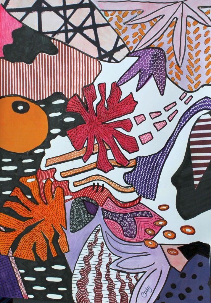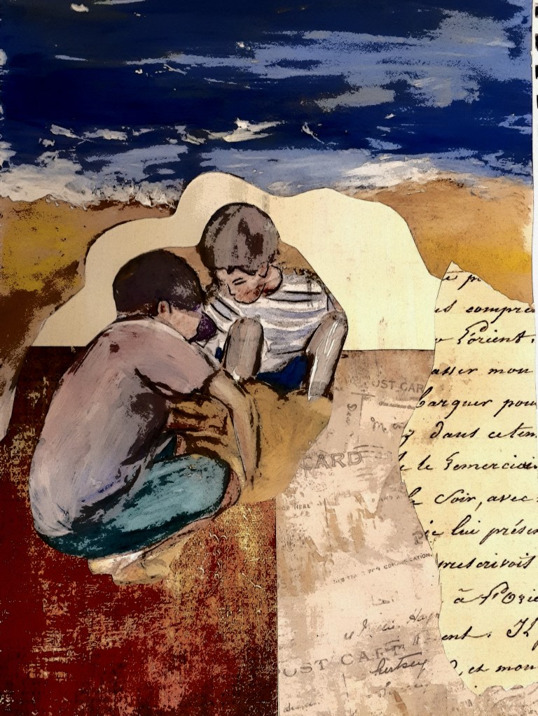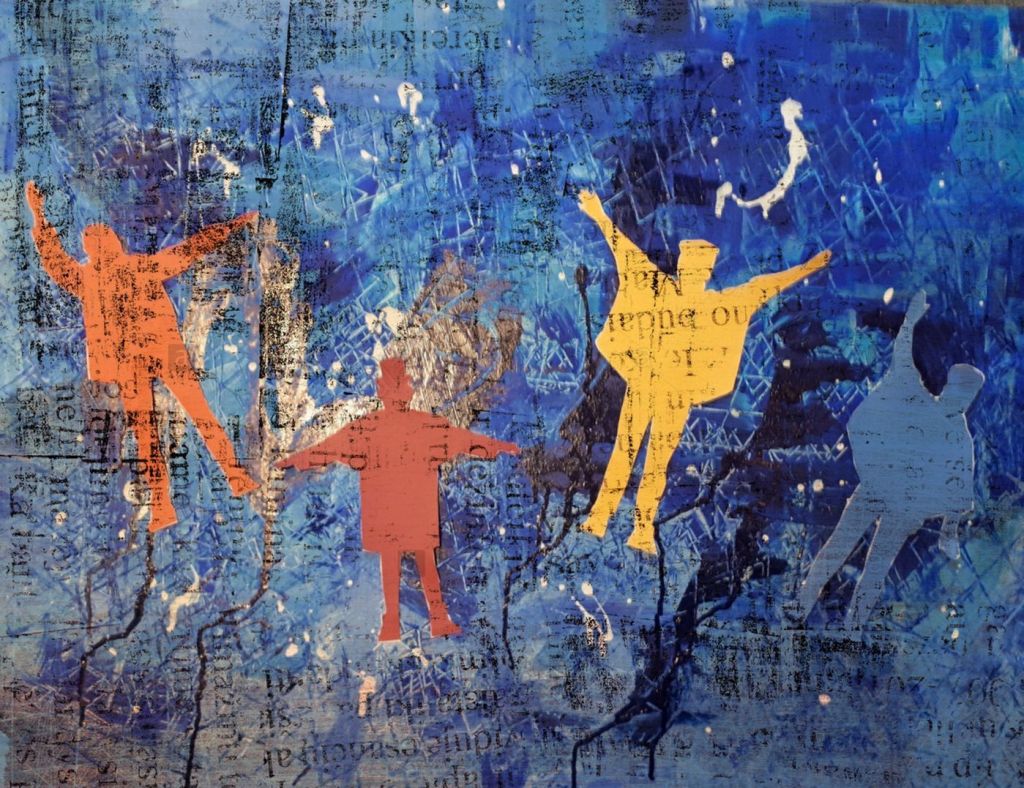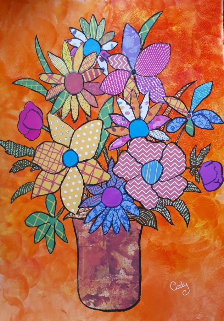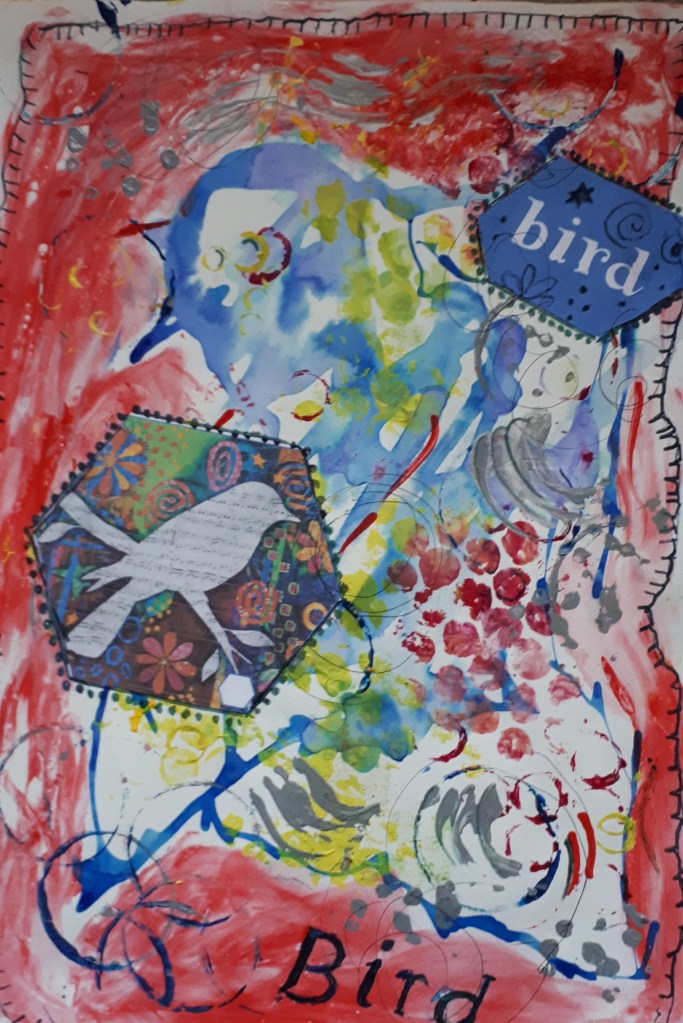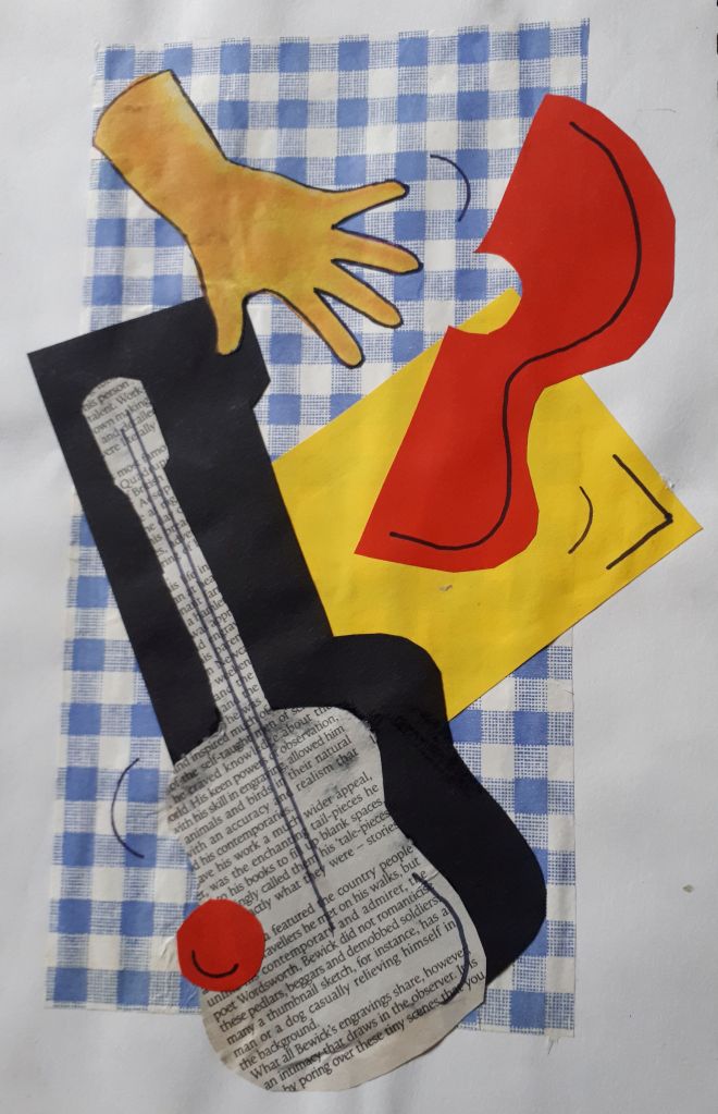 Collage is an art form which is made up of overlapping pieces of material, such as photographs, fabric, coloured and textured paper